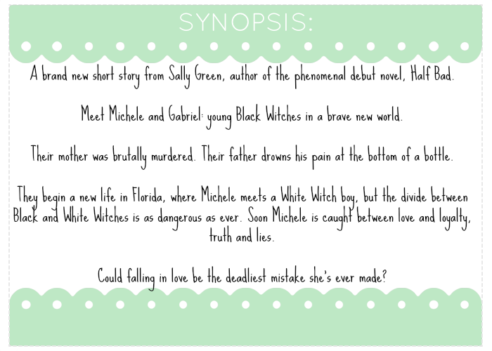 Half Lies tells Gabriel and Michele's story told in the form of Michele's diary. Gabriel and Michele are both Black witches and the Black/White witch divide once again features very heavily in this.